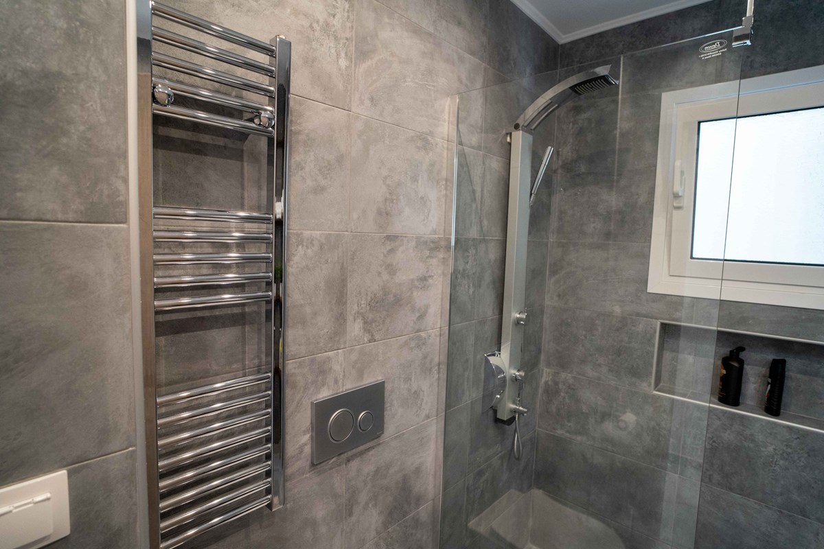 - Ολική ανακαίνιση μπάνιου, τοποθέτηση πλακιδίων τοποθέτηση επικαθήμενου νιπτήρα, ντουζιέρα με καμπίνα-τζάμι securit, εντοιχιζόμενη λεκάνη καζανάκι Geberit.