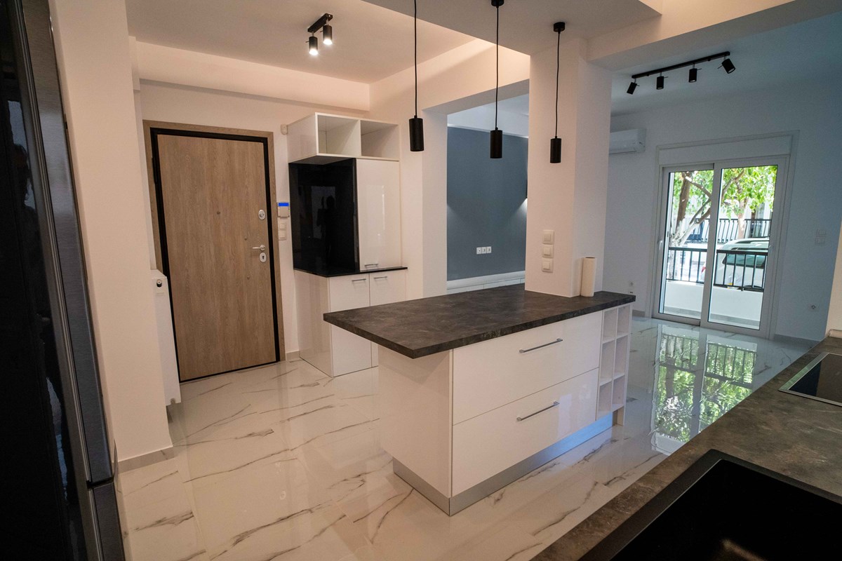 - Αλλαγή εσωτερικής διαρρύθμισης με open plan kitchen.